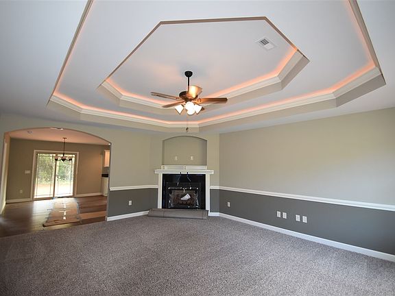 New in District 5! Over 1700 square feet on one level. Open floor plan... greatroom with cove lighting, gas log fireplace, and a great family room layout. Eat-in kitchen with island. Split bedroom plan. Master suite with walk-in closet, double vanity, garden tub, and separate shower. Spacious guest rooms. Covered rear porch. Easy drive to Lake Cooley from here.