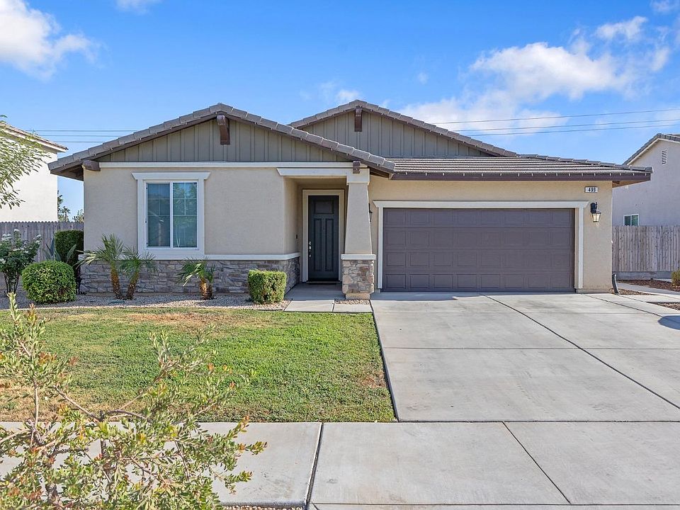 Welcome to your dream home in Lemoore, CA! This stunning 4-bedroom, 3-bathroom home, built in 2018, offers a perfect blend of modern comfort and convenience. As you step inside, you'll be greeted by an open floor plan that seamlessly connects the living, dining, and kitchen areas, making it perfect for both everyday living and entertaining. The kitchen is a chef's delight, featuring a brand new neutral laminate floor, a large island with oversized drawers, and ample counter space for all your culinary creations. The entire home boasts fresh paint and brand new carpet throughout, ensuring a move-in-ready experience. Outside, you'll find a covered patio as well as a designated area for a future gazebo, lounge chairs or fire pit. Raised garden beds with built in misters line the side yard, ready for all of your favorite fruits and veggies. For those with an electric vehicle, the home is prewired for easy car charging, adding a touch of future-ready convenience. The location is unbeatable just a stone's throw from Cinnamon Elementary, making school drop-offs a breeze. Plus, with quick access to NAS Lemoore, Hwy 198, and Hwy 41, your commute has never been easier. Don't miss out on the opportunity to make this beautiful house your forever home
