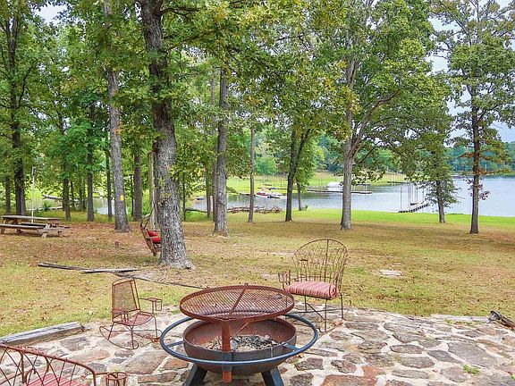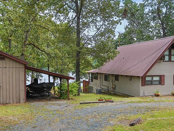 Lake living at its finest! This charming Lake front home is sitting in a very quite cove. Located on over an acre of land with a private floating pier. This cove is on the East end of the Lake right off the open water by the dam. It has 3 bedrooms and 2 baths and has been updated by the current owner. Two bedrooms are downstairs with the other one upstairs. Open living area with lots of windows which provides a great view of the lake. New central a/c added February 2025. This is a great place to rest and relax or the perfect place for family retreats. You will love the decks on the back overlooking the Lake, one is open and the other is covered. The land is manicured and offers places to relax under the large shade trees. The floating pier is great for the kids to swim off of and perfect for the ski boat or fishing boat. This property has a Workshop with 2 lean to, a great place to store all the lake toys. PLUS a boat ramp at the end of the road! HOA has a community pool for the kiddos.