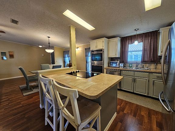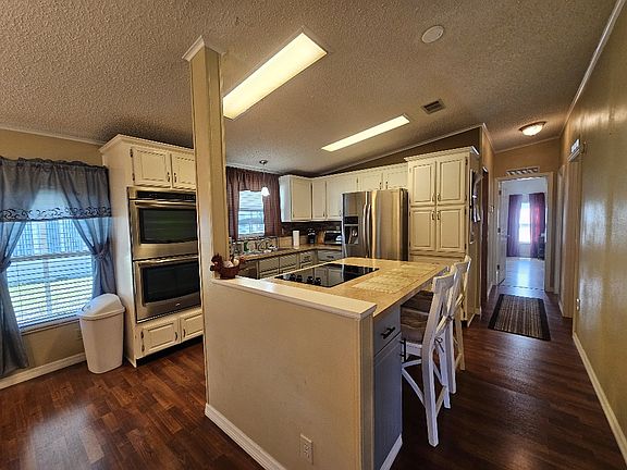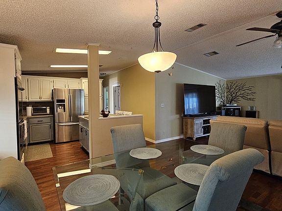 LOCATED IN BEAUTIFUL HACIENDA DEL RIO, A 55+ COMMUNITY! - **JUST REDUCED!** - Step into this beautifully upgraded 2-bedroom, 2-bathroom home featuring a desirable open floor plan. The bright and airy living and dining areas showcase beautiful flooring enhanced by abundant natural light. The well-equipped kitchen boasts new appliances and generous cabinet storage. Retreat to the primary bathroom with its double sinks and a lovely skylight. Enjoy the ease of a new washer and dryer in the dedicated laundry room, plus the added benefit of a 2021 new A/C. Storage is a breeze with a 9x11 shed, and the expansive 10x15 screened porch, with entrances at both ends, offers a fantastic space to relax and enjoy the outdoors. The beautifully landscaped yard with mature trees adds to the appeal of this active 55+ resort-style living. Don't miss out schedule your viewing appointment today!