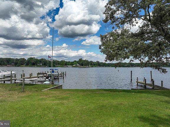 OPEN HOUSE SATURDAY 9/12 FROM 12 until 2 pm. Spectacular Magothy River views abound from this 5-bedroom duplex in Severna Park. 499 Maple Road is the perfect spot for a weekend retreat or enjoy it as a full-time residence, waking up each day to the soothing river views. Dine on the stone patio overlooking the water or launch a small boat from the bulkheaded beach out front. There are wonderful options for how to use the various spaces throughout the home. Step in from the foyer and the water view is immediately apparent through the dining area, living room, and sunroom. Light streams in through the waterside wall of doors and windows, as well as through the skylights. A fireplace in the living room is accented by natural stone and flanked by built-in bookshelves. The dining area has tile flooring, while the living room has new carpeting. The kitchen, with custom yellow cabinetry, has a huge adjoining breakfast area. With tons of natural light, this could also be a good home office location. There are three bedrooms on this level and a hall bathroom. The main level primary bedroom has great views and a built-in platform – with heat – to accommodate a king-size mattress. Upstairs, there’s a spacious family room with fantastic views through a large Palladian window, wood floors, and a 2nd fireplace with marble surround. Again, there is flexibility in the use of space on this level. The 2nd primary bedroom includes a waterside deck and ensuite bathroom. Another possible bedroom, with hardwood floors, has separate access to the family room and includes an adjoining office or exercise space. There is a small deck off this space that overlooks the front garden. This architect-designed home makes full use of the passive solar design to help minimize winter heating costs. This home has just had the interior repainted and new carpet installed and is ready for your special touch! There is ample parking on the shared driveway and two storage sheds for extra items. 499 Maple Road is part of the Arundel Beach community (voluntary HOA) as well as non-voting members of Maple on the Magothy.
