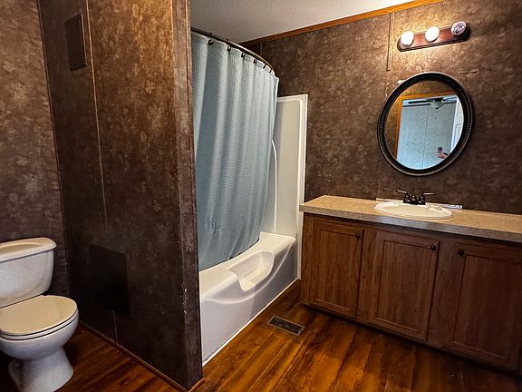 Three bedroom and two bath mobile home sitting on 9 acres with a double wide. Will share a drive way! In a quiet neighborhood. Fishing pond on back of property.