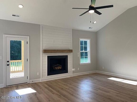Price Reduced! New construction located on 0.83 acre. level lot in rural Franklin County. Open floor plan. 3 BR/ 2 BA, 1650 SF on 1st level and 303 SF bonus room for a total of 1953 SF, with a two car attached garage. Family room with vaulted ceilings and fireplace opens to kitchen and dining area. Kitchen has a island with granite countertop, custom cabinets, stainless steel appliances, and a pantry. Dining area opens to a covered rear porch. Master suite with a trey ceiling and walk-in closet. Master bath has ceramic tile shower, garden tub and a double vanity with granite countertops. Hall bath has a fiber glass tub/shower combo and a single sink vanity with granite countertops. Smooth painted 9-foot ceilings throughout house. Luxury Vinyl Plank (LVP) flooring in foyer, family room, kitchen, and dining area. LVP in laundry room and bathroom. Carpet in bedrooms, stairs, and bonus room. White vinyl, Low-E single hung windows. High efficiency heat pump. Second level has bonus room and walk-in unfinished space for storage. Duke Progress Energy, Well Water and On-site Septic. County Taxes only. Seller will offer up to $3,000 towards buyer's closing costs with acceptable offer. Seller's preferred lender will assist with Buyer's closing costs or interest rate buydown.
