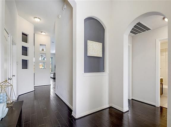 Beautiful Castlerock home (Greenley plan) in desirable Sunfield. Features 10 ceilings & niche wall details. Gleaming hardwood floors throughout the main living areas. Stunning kitchen w/ large center counter~Stainless Steel Appliances~42in Expresso Cabinets & tile back splash. Open living area w/ stone rock wall accent. Spacious Master Suite & Master bath has double sinks~separate shower/tub~linen & walk in closet. Covered patio~4 sides brick~sprinkler system & NO REAR NEIGHBORS. THIS ONE HAS IT ALL!