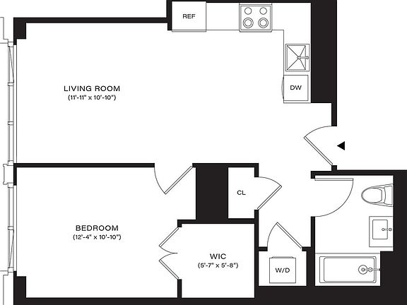 $1,000 Reduced Security Deposit for Qualified Applicants $1,000 move in credit to put towards moving expenses. To receive this reward, an application for an apartment must be completed on the same day as a tour. Expansive one-bedroom apartment, thoughtfully designed with an open layout. The modern peninsula kitchen offers generous counter space and a built in seating area. Enjoy the ease of an in-unit washer and dryer and the luxury of a spacious walk-in closet.
