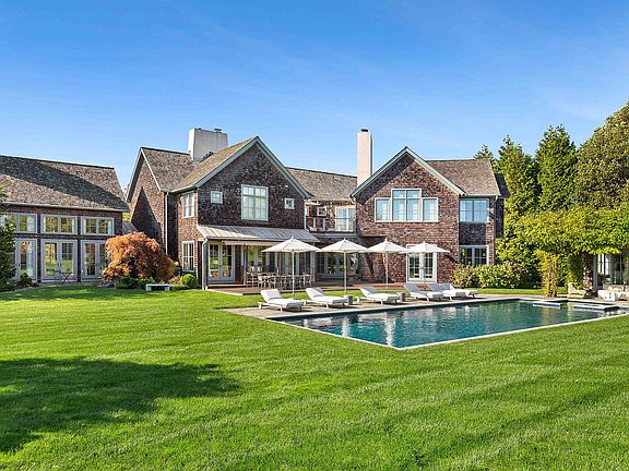 of farmland, this Water Mill estate offers 6 bedrooms and 6 full and 3 half bathrooms across 3 beautifully finished levels. Meticulously renovated in 2019, the residence blends classic Hamptons architecture with a clean, modern sensibility. Ideally located between Southampton, Sag Harbor, and Bridgehampton, it offers a rare combination of privacy, elevated design, and convenience. The interiors are defined by natural light, scale, and thoughtful flow. The main level includes a formal dining room, a chef's kitchen with premium appliances, a dedicated home office, and a relaxed lounge ideal for entertaining. Dual primary suites on both the first and second floors provide flexibility, while four additional ensuite bedrooms complete the upper level. The lower level features a private gym, theater, en-suite bedroom, and generous recreational areas that accommodate both fitness and leisure. Outdoors, resort-style amenities take center stage. A 50-foot heated gunite pool with sun terrace is complemented by expansive lawn, a pool house, covered dining pavilion, and neighboring built-in barbecue-creating a seamless transition between indoor comfort and outdoor living. Balancing timeless design with modern functionality, this Water Mill retreat captures the essence of Hamptons living-refined, relaxed, and perfectly suited for both entertaining and a quiet escape.