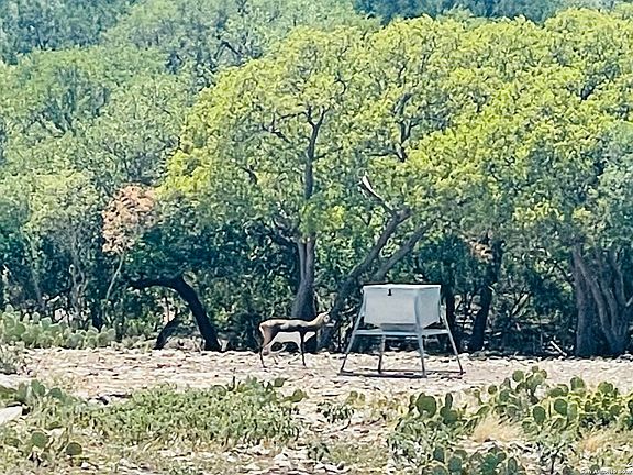 The Rock Bottom Ranch is 50 acres with abundant wildlife and turnkey, 3 bedroom, 1 bath cabin only 20 minutes from Rocksprings with easy access. Cabin offers central heat/air, all appliances, pool table, handsome limestone, wood-burning fireplace, and furnishings! Property is partially wooded with gentle rolling topography and perimeter, high-fenced with custom gate. Expansive covered porch is ideal for gathering. Excellent hunting - axis, whitetail, blackbuck antelope, turkey! 4 corn, 2 protein, and turkey feeders, 3 fiberglass blinds. New septic 2014, washer/dryer 2020, new 50 gallon water heater 2020, pride of ownership! This gem is available right in time for hunting season.