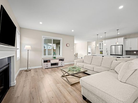 High-end laminate plank flooringLarge windowsCozy gas fireplaceSpacious kitchenGranite countersQuality appliancesMountain views