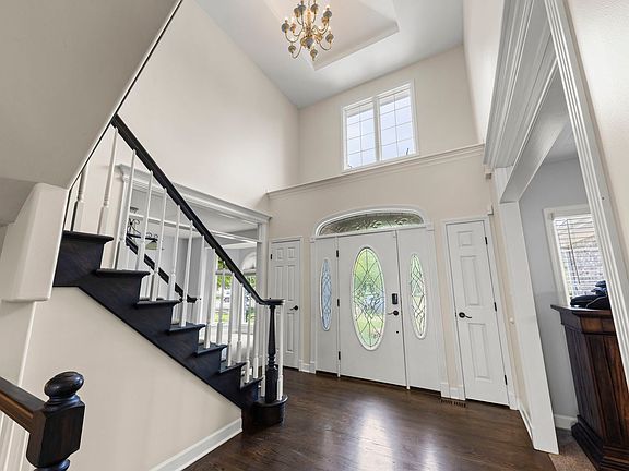 If you're looking for a home that feels like a vacation, this is it! Set on a beautiful park-like lot, this is the ultimate entertainer's dream with space, style, and seriously fun features. With over 4,400 square feet above grade, this builder's home welcomes you with a grand two-story foyer, 9-foot coffered ceilings, detailed trim work, transom windows, and a double-sided fireplace that brings warmth and character. The open layout flows beautifully, making everyday living and hosting feel effortless. The kitchen with oversized island is perfect for hosting large gatherings with a quiet, sunny breakfast room for morning coffee. The double sided fireplace between the kitchen and step down family room makes any winter night a cozy respit. The first floor also features a FULL bath located off the Four-Season room with built in hot tub. A spacious laundry/mudroom with built in cabinets and closet adds functionality and efficiency. Upstairs the open landing leads to a huge primary suite with double walk in closets and a luxurious primary bath with water closet, double vanity with custom conceret countertop, soaking tub and shower. There are 3 additional spacious bedrooms, with vaulted ceilings and skylights, and 2 full bathrooms, giving everyone their own space.The backyard is where the magic happens - a true outdoor oasis! You'll find a huge stamped concrete patio, a cozy firepit, peaceful koi pond, and access to the four-season room with a built-in hot tub that you can enjoy year-round. Plus, you're just steps from parks, tennis and pickleball courts, and scenic walking trails.This home is easy to maintain - with a new roof, skylights, and gutters (2024), dual-zoned HVAC including new furnace in 2022, and a stamped concrete driveway and front walk roughed in for radiant heat. The 3-car garage comes with built-in storage, and the 2,300 sq ft unfinished basement roughed for a bath gives you all the room to expand or customize. Close proximity to schools, Fox Bend golf course and shopping. This one checks all the boxes - space, location, updates, and resort-style outdoor living. Come see this special home and all it has to offer! Additional property features in Additional Information