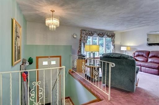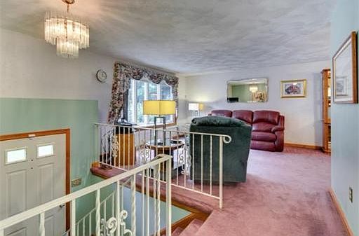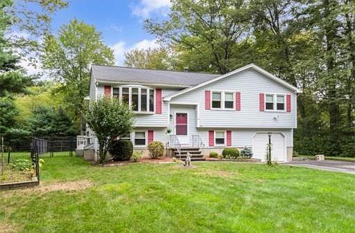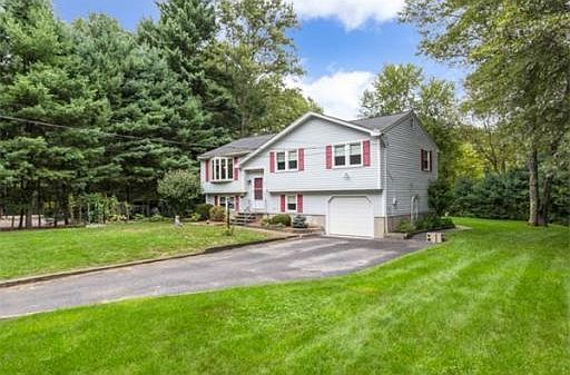Carefully maintained 3 bedroom Split Entry home situated on 2.91 acres of wooded privacy. Eat in kitchen open to dining area, comfortable family room with sunny bay window, beautiful 3 season room with cathedral ceilings overlook huge picturesque private lot complete with walk/jog trails. Lower level has finished family room with energy efficient pellet stove, 1 3/4 bath and laundry area. Warm Southern Exposure, Central air, sprinkler system and garage complete this lovely home. Convenient location to major routes, shopping and the "T."