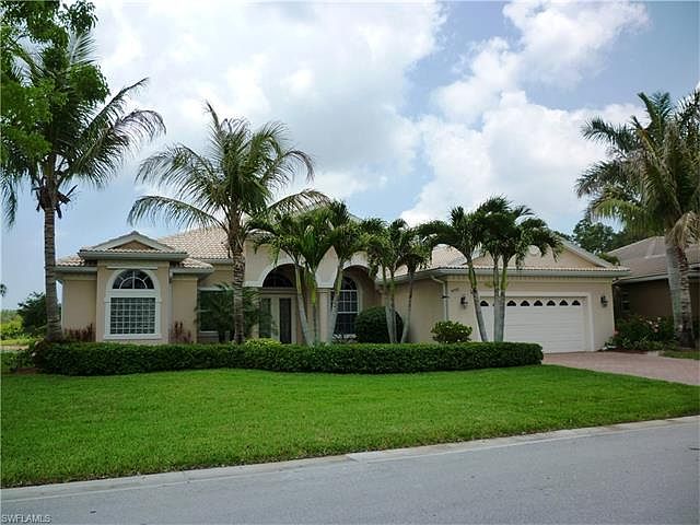 Beautiful lake and golf course views from house and lanai with pool and spa. Owner has paid off both the Clubhouse and the recent golf course renovation assessments. This 4 bedroom/3 bath Sandpiper Model estate home is loaded with upgrades including a new AC and water heater, granite kitchen with premium cabinets and new stainless appliances, plantation shutters on many of the windows, large tile on the diagonal in the main living areas, professional decorating through-out including faux painting and crown moldings. The pool has new solar heating and glass bead surface. The lanai has an electric awing and the house is equipped with a Culligan water softener system including the swimming pool! Sealed roof edges and outside landscape lighting front and back. The oversized two car garage is perfect for having your own golf cart to play the newly renovated Arnold Palmer Signature Golf Course. Naples Lakes Country Club also includes an award-winning clubhouse with fitness center and active tennis program.