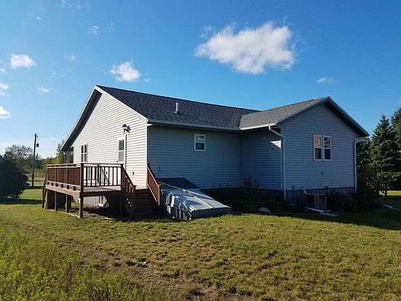 Located 10 miles northeast of Perham, and served by Perham or NYM bus routes. House features spacious rooms with a rebuilt porch (2017) with hidden fastener cedar flooring, new roof on house and garage (2014), and remodeled kitchen (2018). Ready for you to move right in! Property includes very mature pine trees that provide excellent wind protection, established garden area, separate large garden of raspberry and blackberry plants, chicken coup/garden shed, some tillable acreage, across the road from snowmobile trail and 600 acres of state land, and one mile to lake access. Main level: Kitchen, dining room, living room, master bedroom with his and hers walk-in closets, master bathroom with his and hers sinks and jetted tub, laundry, and ½ bath. Finished basement: 3 bedrooms, office (or add egressed window for an additional bedroom), living area, full bath, storage area, and utility room. Also features walk out storm cellar. Property also includes 2.5 stall garage with steel siding and steel roof, and 36x48 shop plus lean-to and storage loft. Half of shop is finished and heated with a wood stove. Buyer representatives accepted.