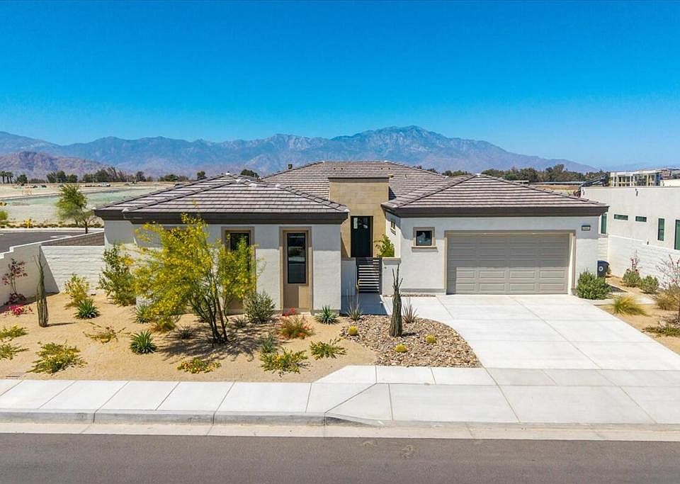 Welcome to luxury desert living at its finest in the prestigious Montage Palm Desert community. This stunning 5-bedroom, 5-bathroom LX-Plan Two w/Casita residence offers 3,297 sq ft of beautifully upgraded living space on a generous 10,372 sq ft lot. Designed for both comfort and elegance, the open-concept floor plan is accentuated by high ceilings, abundant natural light, tile floors in the main living space and premium finishes throughout. Owned SOLAR too! The gourmet kitchen is a chef's dream, featuring top-tier appliances, sleek stone countertops, and custom cabinetry. A private detached casita with its own entrance, full kitchen, and bath provides the perfect retreat for guests or multigenerational living. Step outside into a resort-style backyard oasis with a sparkling pool and spa, lush landscaping, and ample space for outdoor entertaining. Enjoy breathtaking sunset views and the ultimate privacy in one of Palm Desert's most sought-after gated communities. In addition to the extra light from being a corner home, there is a natural green barrier between this backyard and the new Del Webb community behind, so no worries about losing the expansive mountain views of the Mt. San Jacinto range. Additional highlights include, remote/mobile controlled pool/spa, California Closets, a Sonos sound system, and an energy-efficient solar setup with two batteries. Ideally located near top-tier golf courses, upscale shopping, and fine dining, this exceptional home is perfect for full-time residents, vacationers, or investors seeking luxury and convenience. This home is your rare opportunity to own a piece of paradise in the heart of the desert.