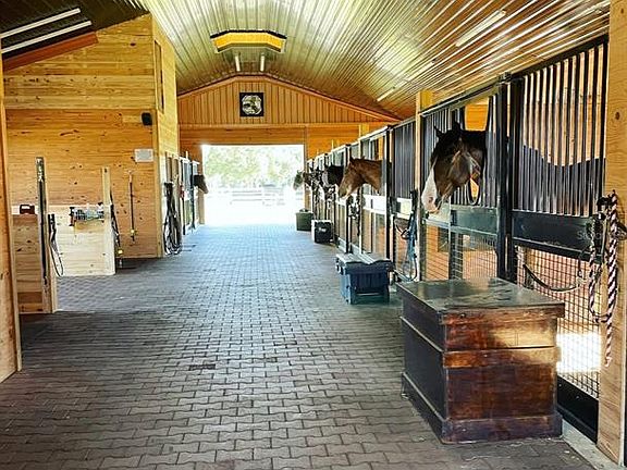 Beautifully well-maintained equestrian facility on high and dry land. Acquire this discreet, high-value investment facility. The location is in the immediate proximity to the circuit, located just 4 miles from HITS and 18 miles to WEC. This Property is (approx. 24.54 acres) includes TWO separate parcels for one price, giving you the functioning barn site plus an adjacent 12.14-acre site (with electric pulled) reserved for your custom luxury estate or barndominium. The facilty was utilized successfully for the past two years as a revenue-generating sales and lesson base barn, it is ideally configured for hunters, jumpers, and dressage professionals. The 11-stall barn features copper roof accents, superior insulation, hurricane-rated roll up doors, and optimal ventilation (three commercial aisle fans plus a fan in each stall). Stalls are generously sized (seven 12x14 feet and four 12x12 feet) to accommodate top competition horses. This property is engineered for unmatched logistical efficiency and profitability, with full wrap-around asphalt millings driveway—essential for seamless semi-trailer access—a wide rubber paver aisle, and a dedicated tack and commercial laundry room. Training grounds feature a manicured Bermuda grass arena with an irrigation system. Accommodation includes two separate existing living quarters—a Rider Lounge with a loft and an Office/Guest Quarters with two flex rooms—plus two RV hookups. Located within the exclusive Starting Point Horse Complex, known for its 10-acre minimums and private training track, this is the rare chance to secure dual homesites, guaranteed income potential, and a fully equipped, resilient equestrian enterprise ready for your competition schedule. Professional pictures coming soon!