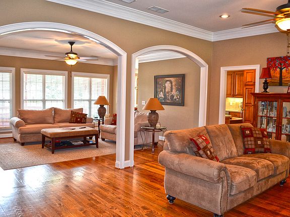 Immaculate 4 sided brick ranch home w finished basement & in-ground pool on approx 16+ private acres w serene creek! Wide foyer entrance opens to great room w brick fireplace. Hardwood floors throughout the main level. Separate formal dining. Large eat-in kitchen offers granite tops & stainless steel appliances. Family room adorned w arched columns, tons of natural lighting, & fireplace flanked w built-ins. Spacious master suite w double trey ceiling & access to deck. Master bath complete w tiled shower, double vanity, & large soaking tub. 3 additional guest rooms & 2 full baths. Basement includes den w fireplace, bonus room/rec room, bedroom, & full bath. Covered deck overlooking pool, lush landscaping, fenced area for pets, & large metal outbuilding.
