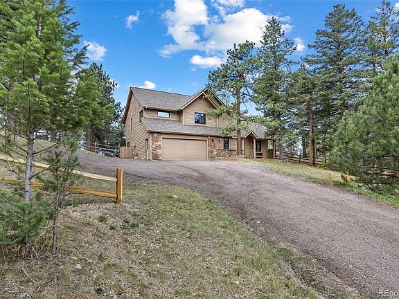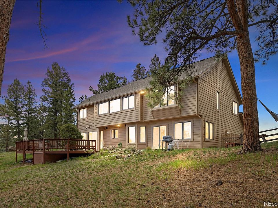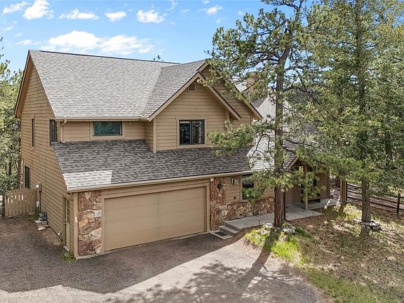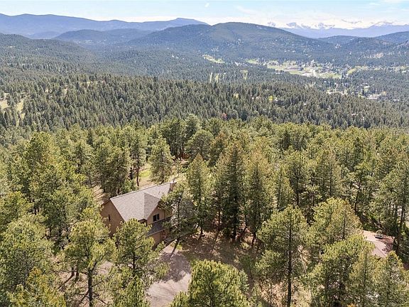 Experience the serenity of Evergreen life in this Builder's personal home, walkable to lake life and the historic Downtown area. With views in all directions from a private, park-like, south facing lot, this home feels secluded but is minutes away from quaint restaurants, breweries and shopping. If you crave the great outdoors, Evergreen Lake is your playground, whether it is water sports, ice skating, a laid back stroll or leisurely round of golf. This sunny, functional, friendly layout is easily adaptable for customization to reflect your personal style and flare. Upon entering the home, feel the warm embrace of the stone wood burning fireplace in the vaulted living room which gracefully transitions to the bright dining and sun rooms, showcasing the clever passive solar energy efficient design. From the wet bar, instantly elevate your mood in the open kitchen with custom oak cabinets, a cozy breakfast nook and family room where sunbeams through more windows and doors bring a smile to your face. A spacious deck with a bonsai tree and a flagstone patio abut the almost level fire mitigated backyard with pines, aspens, blue grass, fragrant lilacs and storage shed. Property insurance companies will show their love with lower premiums due to the October 2023 new roof and gutters. Never miss a day of anything because White House Trail is publicly maintained and the low maintenance, gently sloped, recycled asphalt driveway with large turnaround, RV parking and clean out is easy to navigate. Well and Septic not your thing? This home is on the grid with public water and sewer, natural gas and Comcast. Short walk to the unheralded Bell Mountain Open Space Park. 15 minutes to I-70, 30 minutes to Denver, 45 minutes to skiing, live in this neighborhood accessible to major routes, all while enjoying the freedom of no HOA restrictions. Paired with excellently rated Jefferson County Schools, location, quiet and opportunity come together to make this property desirable real estate.