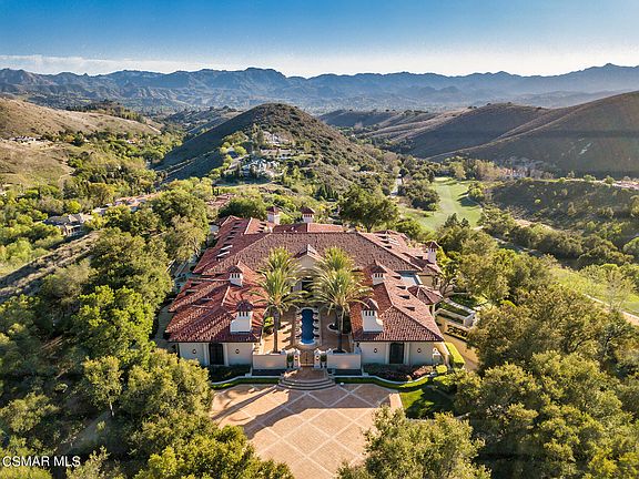 The absolute crown jewel of guard gated North Ranch Country Club Estates. A world class Italian villa set behind private gates atop an astonishing 12 acre promontory boasting the most magnificent views in Westlake Village! A true masterpiece designed and built with the finest finishes. A magnificent long private tree lined driveway incorporates two separate legal lots which leads to this distinguished estate of importance. The over 17,000 square foot floorplan lives as a single story with an additional massive lower level entertainment center boasting a two lane bowling alley, game room with pub style bar and a separate chauffer's quarters. Interior features include imported limestone flooring and accents, soaring detailed custom ceilings, theater, two office/libraries, fitness center with steam and dry sauna and much more. The resort quality grounds are simply breathtaking. Infinity pool, covered verandas, barbecue center, firepit, approximately 1000 imported oak trees and manicured lawns all with jet liner explosive views and complete privacy. Other amenities include an elevator, 25 car finished garage with CO2 recirculating system, smart home and security cameras, radon mitigation system, fountains and water features a tremendous motor court. This is one of Southern California's most distinguished estates!