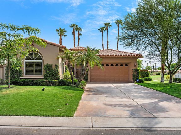 Imagine welcoming each day with a serene sunrise over the 13th tee box and 12th green of the Jones Course at Rancho La Quinta Country Club. This is not just a home; it's a coveted lifestyle. This immaculate end-unit residence offers an atmosphere of privacy with no neighbor to the south, yielding an expansive side yard--a rare find. The spacious 4-bedroom, 3.5-bath floorplan, including a detached casita, is designed for both grand entertaining and tranquil retreat. Soaring ceilings and a wall of glass featuring a 10-foot slider immediately draws you toward the linear pool and spa, seamlessly blending indoor luxury with the sun-drenched desert climate. Natural light floods the living spaces, highlighting the elegant finishes, including granite counters, stainless appliances, and two intimate fireplaces. The luxurious primary ensuite features exquisite travertine surrounds and 2 walk-in closets. Life at Rancho La Quinta is unmatched. Your HOA dues simplify upscale living, covering 24-hour guard-gated security, high-speed internet, cable, landscaping, and walk-up trash service. Best of all, they include a Sports Membership providing access to the newly renovated clubhouse (mid-season completion), tennis, pickleball, pools, and a state-of-the-art fitness center. With this extraordinary amenity package, there is no better time to secure your sanctuary in Rancho La Quinta.