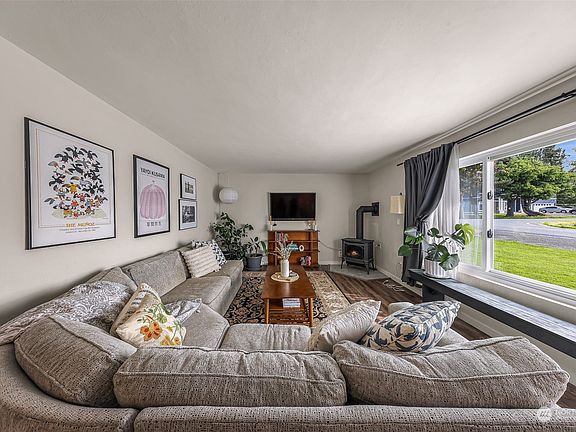 Nestled on a spacious corner lot, this charming 1350 square feet, 2 bed 1.5 bath home offers a host of amenities, including a cozy gas stove, radiant heating, covered patio, attached garage and numerous upgrades made within the last few years! This 12632 sqft lot, provides ample room for outdoor activities, gardening, not to mention the stunning mountain views from the front yard. Conveniently located just 10 min north of Bellingham with easy access to I-5 for commuting. Enjoy the quiet, serene surroundings of pastures and greenery and get the benefits of county living while only being a short drive to town! This home is ready to welcome you with open arms. Don't miss the opportunity to make this lovely residence your own!