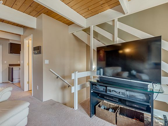Cute Beaverton townhome with private low-maintenance backyard with large deck! Fully fenced backyard backs to gorgeous green space with lots of natural light. Beautiful open beam ceilings, and stylish staircase. Extra deep garage with tons of room for storage and workspace. Washer and dryer stay with home! Two large and private balconies overlook a greenspace and pond. Parking available in driveway, garage, and plenty of street parking. Near parks and shopping. New Mountainside HS district!