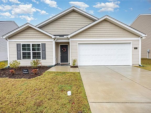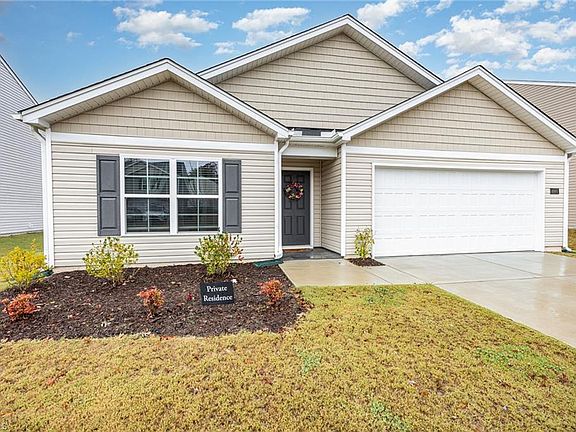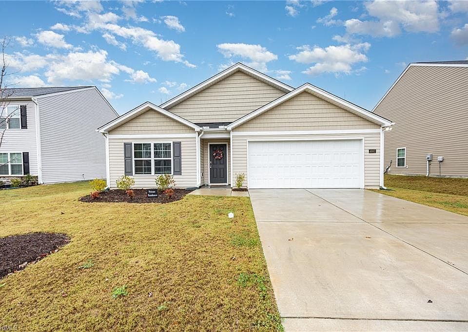 Welcome to this delightful ranch-style home, built in 2023 and perfectly situated on a flat, .29-acre lot with tranquil views of mature trees. Inside, you'll find a spacious, thoughtfully designed open floor plan that blends comfort and functionality. The heart of the home features a large living area that flows seamlessly into a well-appointed kitchen with a generous center island and a roomy pantry — ideal for both everyday living and entertaining. Step out onto the brand-new screened porch, the perfect spot to relax and unwind while enjoying peaceful, wooded views. This home offers ample storage with several well-sized closets and added convenience with New Leaf gutter guards. Modern smart home features include a programmable thermostat and door lock, a wireless switch, a touchscreen Smart Home control panel, automation platform, video doorbell, and an Echo Pop for voice control and convenience. Although set in a serene location, you're just minutes from shopping, dining, and parks.