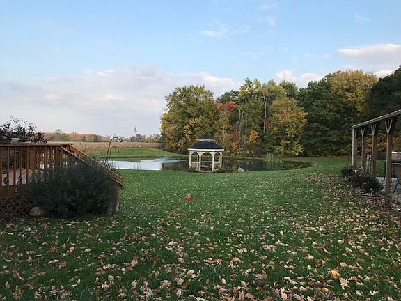 Gorgeous custom built 5 BR, 3 1/2 BA home sitting on approximately 4.5 stunning acres! This home is a decorators showcase! The kitchen has all new appliances, breakfast bar, & dining area. Off the kitchen is an inviting room with french doors which could be a den or formal dining room. The living room with cathedral ceilings has a beautiful wood burning fireplace, and breathtaking views of the pond, with gazebo and brand new pergola and beach area. It is also very common to see deer and wild turkey roaming around. The master bedroom is spacious and you will be spoiled in the luxurious master bath and walk-in closet. This home has all new carpet throughout, new front windows, and new geothermal system as of 2018. The basement has been completely redone and has it's own bar area, family room and well as 5th bedroom. Upstairs you will find 3 additional bedrooms with huge closets and full bath with twin sink. This home has storage galore, but if you need more you will love the 30x48 outbuilding with 8x38 covered patio on the side. This property is the place to enjoy all the family outings, reunions and BBQs! So much room for entertaining. Don't miss out on this piece of country paradise!