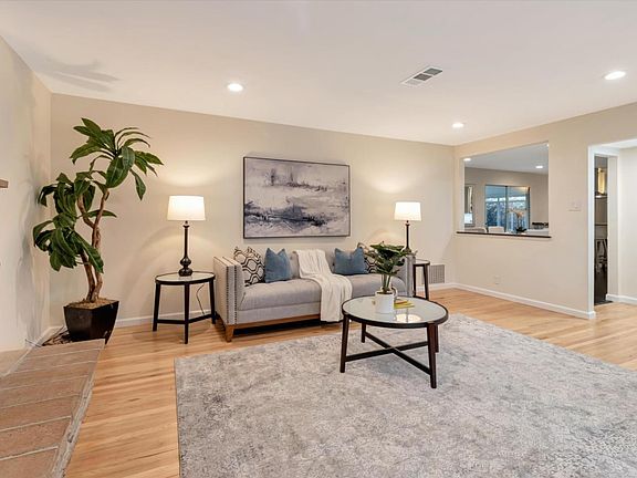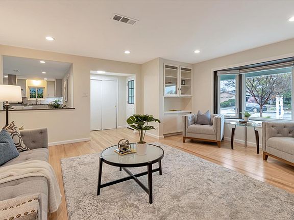 Very well maintained single family home located within an established, peaceful, quiet and convenient Cambrian area neighborhood Upon entering you will be greeted by and impressed with the very large living/great room with recessed lighting, high quality refinished wood floors, large brick covered fireplace, custom built in storage and custom bay window that floods the room with natural light! The dining area is open to the living room and leads into a modern updated remodeled kitchen. The entire interior of the home has been freshly painted and both bathrooms have new floors. The home has solar owned by the seller, central air conditioning, newer energy efficient windows, a newer high quality roof as well as a new fence in the rear yard. Enjoy the low maintenance landscaping in front yard as well as all of the possibilities the oversized side yard offers. Notice the thoughtful details throughout this home and be just minutes from HWY. 85 and everything the area offers