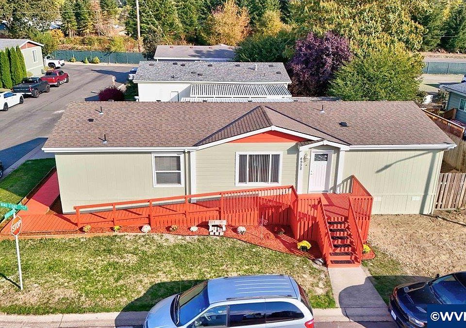 Just updated! Feels like a neighborhood, not a park. New roof, LVP floors, int/ext paint, hall bath/tub surround and more! Large primary en suite w/ sitting room & walk-in closet. Vinyl windows throughout w/ mini splits in primary bdrm and main living area + forced air furnace w/ heat pump. Comfy! 4th room could be den/office, playroom, media room - many options! ADA amenities too - entry ramp from driveway & primary bathroom shower. Close to Lancaster Drive, Cordon Rd and I-5. This is a very nice home! Park space rent is $1,000. Secured parking available for RV, boat or trailer.