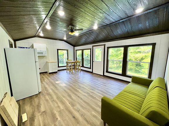 Nestled on just over 5 wooded acres and bordering Pike Lake State Park, this nearly new modular home boasting nearly 800 square feet offers comfort, privacy, and natural beauty. Home was set in the spring of 2024, this home has never been lived in and features a thoughtful open-concept floor plan with vaulted ceilings and large windows that bring in abundant natural light and scenic views. Inside, you'll find 2 bedrooms and 1 full bath, a durable metal roof, and an on-demand hot water heater for efficient living. Outside, a poured concrete front patio offers the perfect place to relax, while a small stream and bountiful wildlife add to the peaceful surroundings. Whether you're looking for a charming starter home, a weekend retreat, or a turnkey vacation rental, this property offers endless potential in a serene, wooded setting.