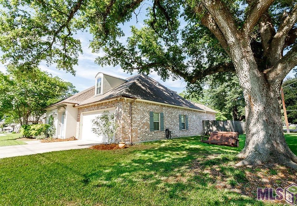 Nestled on a spacious corner lot, this 4-bedroom, 2.5 bath home is perfectly located in the heart of Baton Rouge and offers easy access via multiple thoroughfares. The property boasts a majestic live oak tree that provides ample shade, an inviting swing and a picturesque setting. This home has been very well maintained. 9' and 10' ceilings downstairs, complemented by hand scraped, engineered wood floors and designer 18" ceramic tile. Very inviting large den with a fireplace. Kitchen & dining area has an oversized island, granite counters, stainless appliances and a gas stove. Home is bathed in natural light, thanks to the wall of windows that overlook the backyard and patio area --perfect for entertaining. The large, private master bedroom suite area is located downstairs, with an oversized walk in closet with lots of built ins, two separate vanities, a large jetted tub and separate shower. The upstairs bedrooms are all good sizes with nice closets, the 4th bedroom is versatile and can serve as a wonderful office space. With the location, & the welcoming atmosphere, this home is a must-see!!!