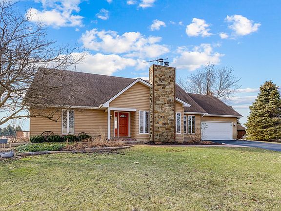 Enter this exquisitely maintained custom home complete with quality features throughout. Features include hardwood floors, Anderson windows, updated baths, central vac, energy efficient furnace with Trion air cleaner, 2 fireplaces and Hunter Douglas ceiling fans! Gourmet kitchen is flooded with natural light and boasts solid oak cabinetry, stainless steel appliances, breakfast bar, spectacular pantry space, recessed lighting and tray ceiling! Eating area opens up to kitchen and highlights a glass wall of french doors leading to deck! Picturesque views! Sun-filled geat room features stately fireplace. Expansive master bedroom offers private ensuite with ceramic flooring, oak vanity and whirlpool tub!! Four additional spacious bedrooms with incredible closet space. First level laundry for convenience. Mud room offers exterior access to deck. Unfinished basement with fireplace, basement plumbed for bathroom! Large garage bumped out 4 ft in order to accommodate long vehicles. Your backyard is a private oasis with SO much to offer. Private 2 acre lot is all yours! Highlights include sweeping views,Paver brick walkways in the front and backyard, large deck with gazebo, above ground pool with separate deck and an awesome 20x14 lofted barn! Mature and majestic trees encompass the lot and perannial flower beds add a touch of beauty. A true sanctuary! Book your tour while still available.
