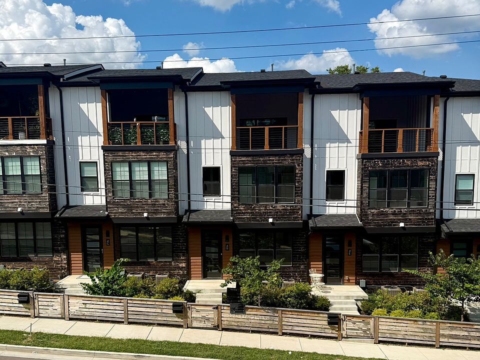 Walk to WeHo from The Wharf. Located a few blocks from the heart of Nashville’s creative epicenter and one of our most rapidly expanding and evolving neighborhoods, The Wharf is a small boutique development featuring a mix of Townhomes and Cottages. This townhome offers a primary suite with views of town, Top floor bedroom and bonus landing that opens to a covered outdoor terrace. A fenced front yard leads into the main level living room, dining and kitchen which features natural light from the front and back of the home thanks to the rear loaded garage being tucked below in the basement. Rare basement offers 4th BR or bonus room (fitness/theater) and legitimate storm shelter. Upgrades include tankless water heater, EV charger, spray foam insulation package and low maintenance cedar siding with Japanese Yakisugi burn finish