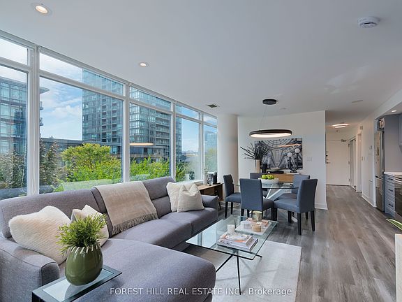 Welcome to nearly 850 sq. ft. of open-concept living! This beautifully maintained corner suite features 2 bedrooms + den, fresh paint and lighting (2025), Smart Modern Forms ceiling fans(2025), updated kitchen backsplash (2021), and custom heat-blocking blinds (2021). Enjoy floor-to-ceiling windows and a private balcony with lake views in the heart of downtownToronto. Prime location: Sobeys downstairs, The Well across the street, streetcar at your door, UnionStation in 10 minutes, plus easy access to Lakeshore & the Gardiner. Steps to Rogers Centre, CNTower, Harbour front, and more. Complete with 1 parking space and 1 locker. Exceptional Amenities: 24-hour concierge, gym, sauna, indoor pool, media room, party room, rooftop deck/garden, BBQ facilities, guest suites, visitor parking and much more! MUST SEE!