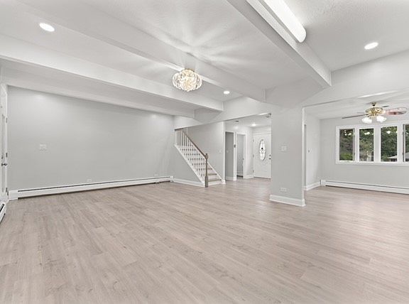 Welcome to this stunning home in desirable White Pine neighborhood! With over 2200 Sq Ft of fully remodeled living space offering 4 bedrooms, generous room sizes and a fantastic condition, this home offers the perfect blend of comfort, style, functionality and it has been completely redone to perfection. The spacious kitchen boasts brand new stainless steel appliances, sleek granite countertops, and classic oak cabinetry-a true chef's dream. The fully updated bathrooms bring a touch of modern luxury, while radiant heated floors in the basement, living room, and garage provide warmth and comfort throughout. The family room features a traditional wood-burning fireplace, ideal for cozy nights in. Luxury vinyl flooring throughout the home. 2.5-car oversized garage with ample space, plus spacious driveway. Wheelchair accessible ramp allows easy access to the home through the large backyard patio. The expansive yard is great for hosting family and friends or simply relaxing in a serene environment. For additional storage, a storage shed is included, and a crawl space adds more room for your belongings. Brand New AC unit along with updated electrical and plumbing updates. Property sold as-is.