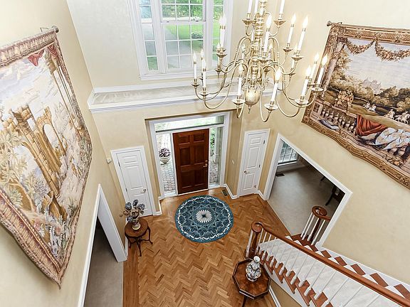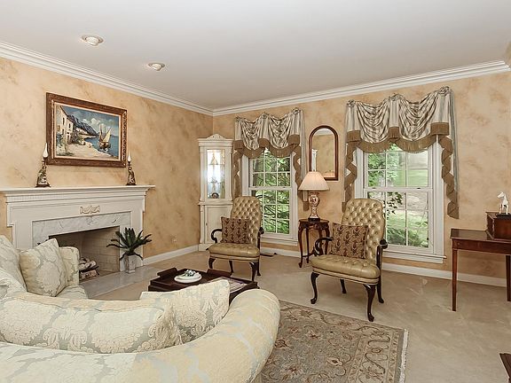 This stately custom home is nestled on a quiet street in the aptly named Hidden Oaks subdivision surrounded by mature trees and a backdrop of lush protected wetlands assuring that nothing will be built and your scenery will not change. The charming brick-cobble walkway leads you to the 2-story foyer flanked by formal living and dining rooms and grand staircase. A few steps in, you will notice the incredible family room with 25' ceilings and floor to ceiling windows that frame the custom-built and carved fireplace surround that also reaches to the ceiling. The adjacent wet bar and French doors to the fabulous deck make entertaining a breeze and the picturesque view of the wooded backyard is an added bonus. The adjacent eat-in kitchen has room for lots of chefs with a huge center island, loads of counter space, granite countertops and plenty of cabinetry. A laundry room and office with built-in bookshelves round out the first floor. Upstairs you will find the primary bedroom suite with walk-in and reach-in closets, skylights, double vanities, jetted tub-a true retreat! All 3 secondary bedrooms have new Pergo flooring and are nicely sized with a Jack N' Jill bathroom between two of the bedrooms and a private bath for the 4th. The finished walk-out lower level has it all boasting a billiards/game room, rec room, a full bathroom, custom wine storage, full wet bar with dishwasher and bar fridge plus a 5th bedroom with French doors to the patio area. New carpeting throughout. There is even an underground sprinkling system. Welcome Home!