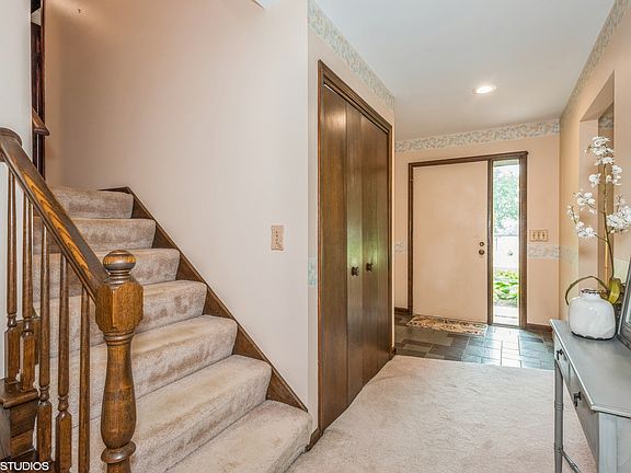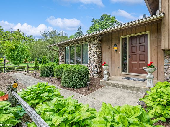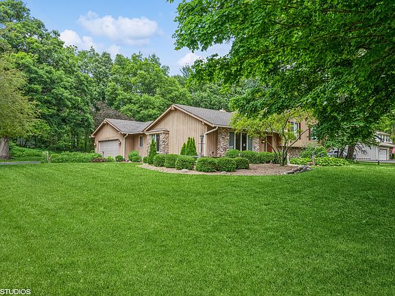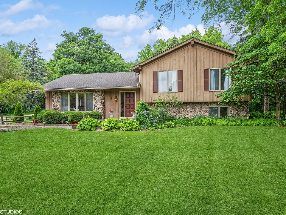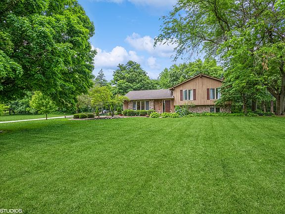 Welcome to Fenimore Lane in Oak Openings! A beautiful tree lined neighborhood with winding roads, unique architecture, and the perfect blend of privacy among a community of neighbors. On nearly an acre lot, this tri-level home sits along a corner of Hawkeye and Fenimore, framed by a split rail fence and a density of trees much like a forest preserve. An exterior of cedar and Wisconsin bluestone and an abundance of perennials lining the front walk way, add to the curb appeal. Inside you will find a surprising amount of living and storage space between the 4 bedrooms, 3 full baths, and an unfinished sub basement which is often lacking in split level homes. The kitchen has been renovated over the years with granite tops, ceramic floor tiles, and newer stainless appliances. The eat-in table space plus formal dining room are the perfect spaces to host gatherings year round. Both a formal main level living room and a lower level family room with wood burning fireplace, built in book shelves, recessed lighting, and exposed wood beams, are great for entertaining as well. There are 3 bedrooms on the second floor, including the primary bedroom and bath, and an additional hall full bath. The lower level has a 4th bedroom and full bath option, or perfect for a private home office. So much potential, so much space! Come see what you can do to make this your forever home! Roof approximately 20 years, Furnace and AC 2010, Humidifier 2019, Water Heater 2015, 2 Sump Pumps (1 new, the other 5years), Water Filtration and Softener 2022, Paver Patio 2016, Driveway 2018, GE Stove 2021, Maytag Fridge 2022, Disposal 2024.