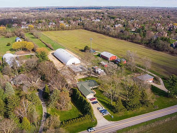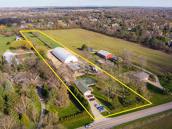 Turnkey equestrian property (unincorporated DuPage County) with indoor arena (170x62) on 5+ acres adjacent from the largest forest preserve in DuPage County (3400+ acres) and Illinois Prairie Path. Over 72 miles of trails. Barn, 52x68 with all new electric. 12 stalls, 10x10 with wall to wall mats, plus a 19x12'3 foaling stall and extra space for more stalls, if needed. Run in sheds 50x32 and 30x12. Heated tack room 17x24. Large 19x12 grain storage room. Two Paddocks (2.75 acres) with heavy duty "no climb" Red Brand horse fencing with electric braid hot wire and solar charger. Numerous dry lots. with limestone base. Trailer parking on South side of barn. Vehicle parking to the north (11). Parking in front (11). Driveway overhang lighting and security cameras. Hoop shed (12x20) for equipment storage. Sprawling ranch offers 2347 sq ft, built in 1969. Three bedrooms, barn office, 2 kitchens, 2 dining areas. Extra separate living area could be use as a party room for pony parties or an "in law apartment". Eat in kitchen opens to a large living room with 2 sided WB fireplace, gas start. Knotty pine interior walls are in pristine condition. New roof (tear off) 2017 with new decking and architectural shingles, new gutters and gutter guards. Large patio with pergola. New Carrier furnace and AC 2019. Eat-in kitchen with new GE electric oven that has never been used. Well tank 2022. Sewer line to septic replaced 2022. Oversized attached garage 23x28 with new garage door and access pad. Quiet convenient country living at its best in fabulous location! Survey, features and Lot dimensions available upon request.