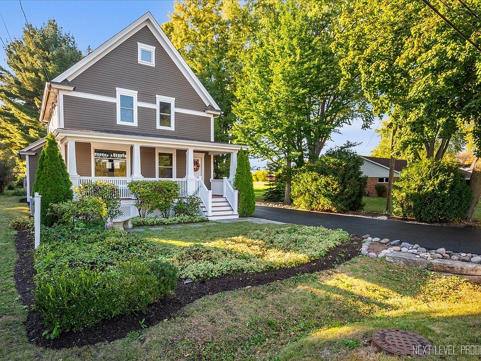 Welcome to this completely renovated 4 bedroom, 2.5 bath farmhouse, located only a few steps from downtown Wasco yet out of the way from traffic, offering the perfect blend of location and convenience with peace and quiet. Set on a landscaped lot with mature trees, this home greets you with a huge front porch, brand new driveway, and new 2-car garage. The fenced backyard features a new deck, perfect for relaxing or entertaining. Inside, enjoy new hardwood floors, recessed lighting, and a light, modern palette throughout. The gourmet eat-in kitchen boasts stainless steel appliances including a 6-burner Wolf stove with high-power vent, Bosch dishwasher, microwave drawer, warming drawer, and island with breakfast bar. High-end Thomasville cabinets, solid surface countertops, subway tile backsplash, and both under- and inside-cabinet lighting complete the space. The adjacent dining room is ideal for gatherings. The main floor primary suite offers a cathedral ceiling, walk-in closet with designer closet organizers, and elegant bathroom heated floors and luxury walk in shower. A first-floor laundry room and powder room add convenience. Upstairs you'll find three more bedrooms including a second primary bedroom with with designer closet organizers and a beautifully finished full bath with heated floors (in laundry room as well). Additional updates include all new windows (except original leaded glass), new furnace, AC, water heater, cement board siding with PVC trim, smart thermostat, upgraded insulation, fully replaced electrical and plumbing, wall-mounted TV outlets in every bedroom, and partial roof replacement in 2024. Located in award-winning St. Charles School District 303, and walkable to parks, the post office, and elementary school, this move-in-ready gem offers thoughtful upgrades inside and out.