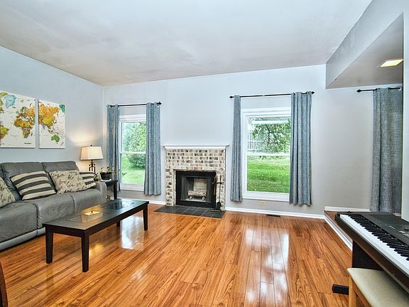 Welcome Home! You'll ABSOLUTELY LOVE this Spacious End Unit Ranch-Townhome with FULL FINISHED BASEMENT in Highly Sought after Pool Community Country Lakes! Ideally located close to the Train & Interstate and a 2 Minute Walk to your Association Sun Deck & Pool, Tennis Courts & Clubhouse. Spacious & Open with New Entryway Door Leading to the Foyer & Stepdown Living Room with Beautiful Brick Surround Fireplace! Newer Windows throughout, White Trim Package, 6 Panel Doors & Modern Color Tones! Kitchen Boasts White Oak Cabinetry, Table Space & Pass through to the Dining Room! Newer Black SS Range & Microwave & SS Dishwasher! Main Floor Bath is a Shared Primary with a New Vanity & Luxury Tile Flooring & Tile Surround Combo Shower/Tub! Spacious Bedrooms Including Primary with New Sliding Glass Doors to Rear Paver Patio Area Perfect for Entertaining! Downstairs you'll find a Finished Basement with Brand New Carpet, Dry Bar, Family Room & Recreation Room & Spacious Storage/Utility Room with Washer/Dryer, Newer Furnace & New Hot Water Heater, New Sump Pump & New Electrical Box! This End Unit Offers Privacy, Lots of Greenspace for Entertaining & So Much More! Come See it TODAY!