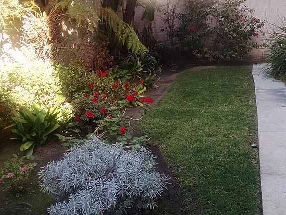 Lovely small home. Classic Spanish upper unit +-1000 sq ft 9 ft coved ceilings; french windows; Wall to wall new berber carpet; Remodeled kitchen solid maple cabinetry, granite counters, stainless steel built ins; Remodeled bathroom with separate stall shower, separate bathtub; Large closets; Service porch accomodates washer and dryer; Carport parking. Front and back doors for ingress/egress. No pets please. Trash Disposal, Water paid by Lessor