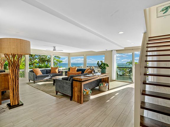 Beachfront homeExpansive ocean-view living spacesOpen lotSandy shorelineFour lanaisPrivate suites