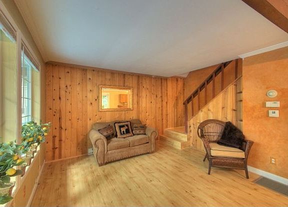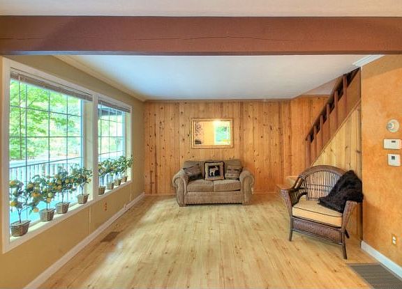 Incredibly charming & well-maintained chalet-style 3 bedroom & 1 full bath home, approx. 1,140 SF, with views of the mountain tops. Welcoming front porch (fenced and gated). Kitchen features tile counter tops + all appliances included. Dining nook. Beautiful rock gas fireplace. Newer vinyl windows. Living room with walls of windows + French doors to large deck. Upstairs bedrooms with vaulted ceilings. 3-decks in all. Plenty of parking.