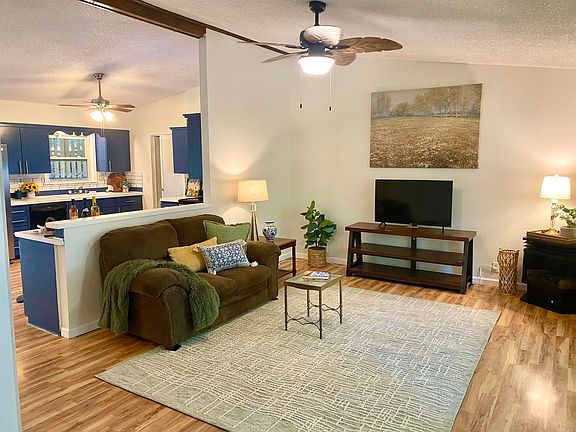 BEAUTIFUL Mid-Century Modern home with soaring ceilings, an OPEN FLOOR PLAN and fresh new paint throughout! Ready for you to move in and enjoy.... the huge kitchen and living room lead to sliding glass doors into the lush backyard, complete with a patio to host your friends, plus all new Cedar Fencing with convenient gates on both sides. Inside, you'll appreciate the updated bathroom with a lovely glass-doored shower, a spacious primary bedroom with an en-suite, beautiful and durable vinyl flooring, a corner movable gas fireplace for cozy winter nights in the living room, and energy efficient newer vinyl windows throughout. There's a laundry room off the kitchen, and a one-car garage with a large walk-in storage closet. Let's talk about LOW MAINTENENCE....NEW ROOF, NEW FENCE, NEW HVAC, NEW HOT WATER TANK, NEW PAINT, newer model VINYL WINDOWS that flip in for easy cleaning, plus a NEW SHOWER. Seller did all this work, then needed to move back north to be near family. GRAB THIS AMAZING HOME NOW, before it's gone!