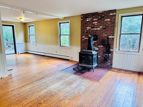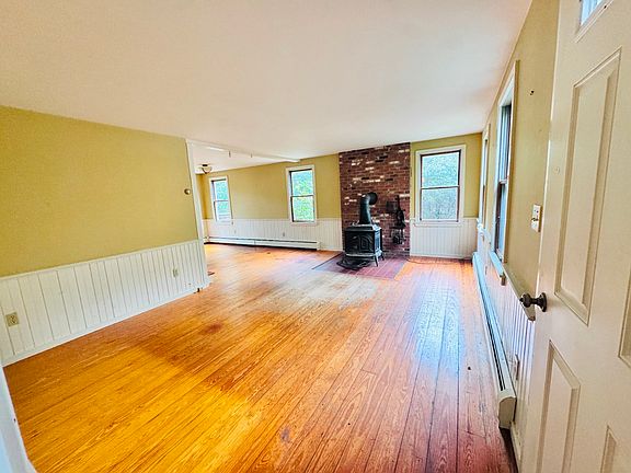 Sited on a quiet cul-de-sac in the mid-island area, this charming Cape sits on an oversized lot offering ample room for expansion. The entry opens to a spacious living room with a woodstove, a dining area with sliding glass doors to the back deck, and a galley kitchen. Off the kitchen, a mudroom with laundry and a rear entrance provides practical everyday access. A versatile room with a closet connects the living area to the back hall and can serve as a first-floor bedroom or den. A full bath with a stall shower, located off the kitchen hall, serves that room and doubles as a convenient powder room. The full basement, accessed from the back hall, offers generous storage and potential for additional finished space. A central staircase leads to a bright landing with a large skylight and doors to two bedrooms connected by a Jack-and-Jill bath with a tub/shower.