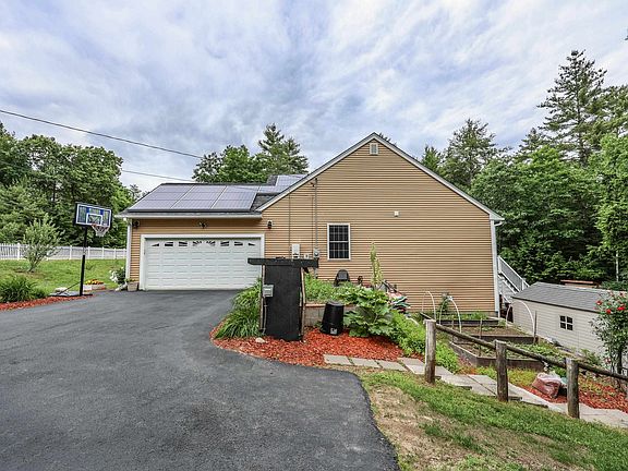 Beautiful Ranch style home located in desirable Hutchinson Hills Estates! This Ranch home combines the ease of single level living with modern updates you desire. The main level offers an updated kitchen with breakfast bar, granite counter tops, stainless appliances and recessed lighting. There is a quaint living area equipped with a propane insert, natural lighting and direct access to the composite deck on the rear. The main level also offers a private office with daylight views over the farmers porch. There is a large primary suite sporting a walk-in closet and full bath with dual vanity sinks. The home offers two additional bedrooms on the 1st floor as well as a convenient laundry room. No doubt you will enjoy the cost savings of a newer built home complimented by a the Tesla solar array, tankless water heater, and high efficiency furnace. If your looking for extra space to grow, just head downstairs where you will find an expansive walk-out basement that is nearly complete. This property is filled with blooming flowers, lush landscaping, and lends opportunity to the avid gardener. Spend time taking a stroll through the neighborhood or enjoy the peaceful setting from the farmers porch swing. The fully fenced yard offers added safety for the pooch or your kiddos. There are multiple outbuildings adding ample exterior storage and plenty of space for all of your toys. All this located just minutes to Bedford, Hollis, Milford and the Mass border.