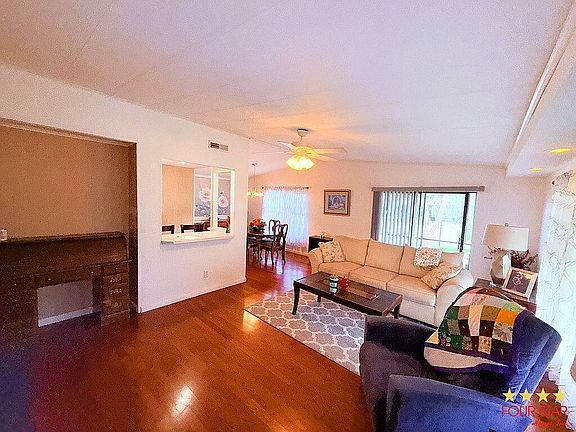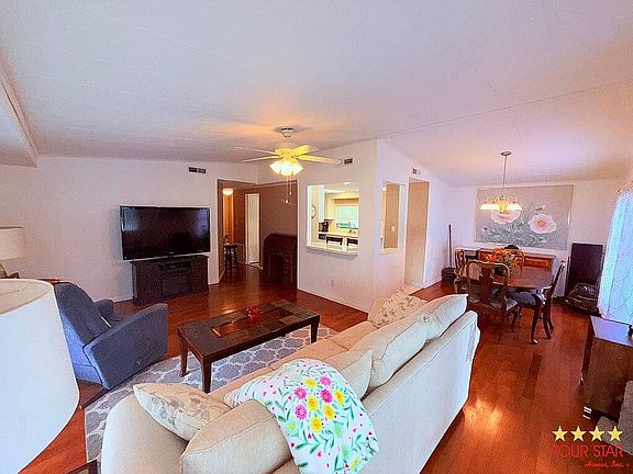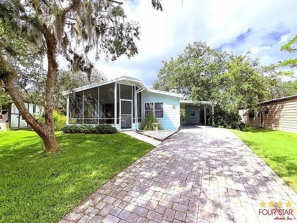 Welcome to The Falls at Ormond, a beautiful upscale community offering resort style living and 24-hour security. This 1989 2-bedroom, 2-bath furnished home is perfectly situated on a quiet cul-de-sac at the front of the park, backing up to peaceful woods for added privacy. Featuring a cobblestone driveway, carport, and a charming screened porch, this home blends comfort and convenience. Inside, you will find gorgeous hardwood flooring, drywall throughout, cathedral ceilings, and ceiling fans. The spacious living and dining areas flow into an open kitchen with abundant counter space, cabinetry, pantry, and modern appliances including a flat-top stove, microwave, dishwasher, disposal, and side-by-side refrigerator. The inside laundry area includes a stackable washer and dryer. A 2020 shingled roof adds extra value and peace of mind. Motivated seller! Do not miss this move-in ready gem in one of Ormond Beaches most sought-after communities!