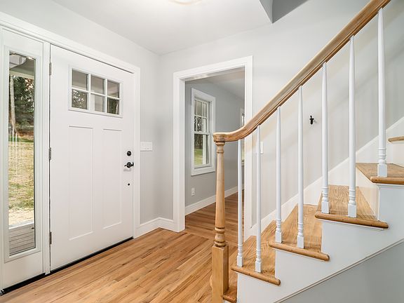 Reimagined from floor to ceiling in 2025, this quintessential New England colonial is better than new. Set on 2 acres, it showcases a timeless gambrel roofline and an inviting front porch (built brand new from the ground up) that spans the length of the home. All landscaping, walkways, & stunning granite steps were newly installed, creating a fresh and welcoming approach. Inside, one of the most compelling features is the home's flexible layout, offering a half-story bonus room with a rear entrance and full bathroom; an ideal optional fourth-bedroom suite, private office wing, or playroom. Throughout the home you'll find new Andersen windows, new hardwood flooring, all-new electrical, & a hydro-air HVAC system, creating a truly turnkey living experience. The eat-in kitchen is a standout, designed with crisp white cabinetry, a deep navy island, quartz countertops, GE stainless-steel appliances, a custom sliding barn door to the pantry, and a glass-tile backsplash that adds a clean, contemporary edge. With direct access to both the dining room and the brand-new rear deck, it's an ideal layout for everyday living and casual gatherings. The screened porch is truly memorable. Complete with its own fireplace, it serves as an all-season haven surrounded by nature. Upstairs, the primary suite includes a walk-in closet and full bathroom. Two additional bedrooms share the hall bath. Each bathroom has been fully redesigned with dual vanities, tile surrounds, and designer-grade fixtures. A full walk-out lower level remains unfinished, offering a substantial footprint for future expansion. Additional upgrades include brand-new garage doors, roof, and gutters. Located in a cul-de-sac neighborhood less than 5 minutes from I-84, schools, and shopping, this home offers a rare blend of modern style, thoughtful craftsmanship, and everyday convenience. Visit www.5AntlerPineRoad.com for more details.