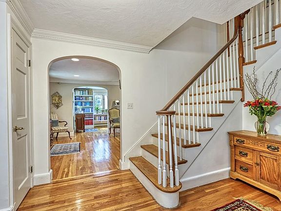 Stately and handsome 4 bedroom brick Colonial on a quiet corner lot in Newton Centre. Sun-filled front-to-back living room with fireplace and hardwood floors. Large sunroom with double doors to deck overlooking the back yard. Formal dining room, kitchen with large pantry creating many possibilities for expansion. Spacious master suite w/ private bath, separate office space with double doors to balcony, and walk-in closets Three additional bedrooms and bath complete the second floor. The lower level features a playroom, storage and access to the garage. Walk to the Ward School, Houses of Worship, BC Law School, and Boston College! Close to Newton Centre shops, restaurant and "T". Needs updating but worth the effort. Easy access to the Pike and Boston.