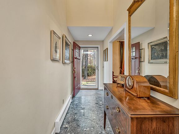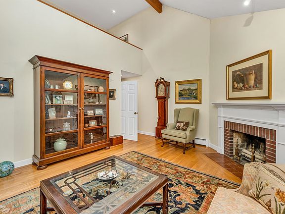Welcome home to this distinctive custom colonial in a quiet Cul-de-Sac. A winding brick walk leads to the front entrance hall. You’re going to be impressed by the dramatic living room with vaulted ceiling and skylight opening to the second floor and featuring a gorgeous fireplace and hardwood floors. The designer kitchen with its huge center island and an abundance of counter and cabinet space is sure to please the chef of the household. Elegant details like deep valances, glass china cabinets, recessed lighting and pantry all add to the appeal. The slider door leads to a beautiful multi-level deck. And the large two car garage is right off the kitchen. Enjoy the formal dining-room for holidays and special events! There are two spacious bedrooms and a full bath tucked off the front hall providing the opportunity for one level living. The primary bedroom suite offers a private ¾ bath and a huge walk-in closet. Off the hall is a bonus room which is being used as a den but could also serve as a nursery or bedroom. The walk-out lower level features a spacious family room with wood floors, plenty of full daylight windows, built-in shelving, an office, cedar closet, ¾ bath, and a laundry room This is one of the most beautiful lots in Windham with a huge level yard! You will enjoy the warm weather on the deck which leads to two patio areas. Best of all there is a handsome, two-story post and beam barn for collectible car or hobbyist pursuits.