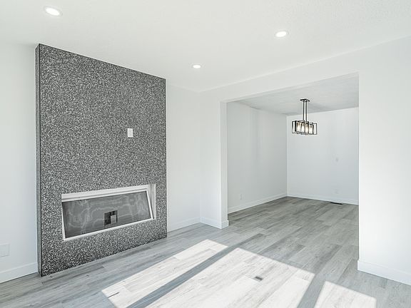 Durable vinyl flooringBrand-new electric fireplaceStylish dining spaceBeautiful kitchenBrand-new cabinetsQuartz countertopsModern backsplash